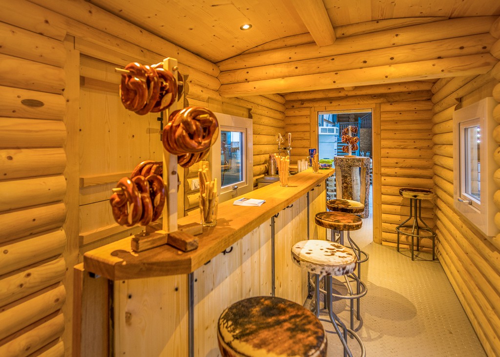 Die Bar mit einer Grundfläche von 2.5 mal 8 Meter transportieren wir mit einem Lastwagen zu Ihnen und laden sie an gewünschter Position ab. Sie müssen nur noch den Strom anschliessen und die Zapfanlage in Betrieb nehmen und es kann losgehen.